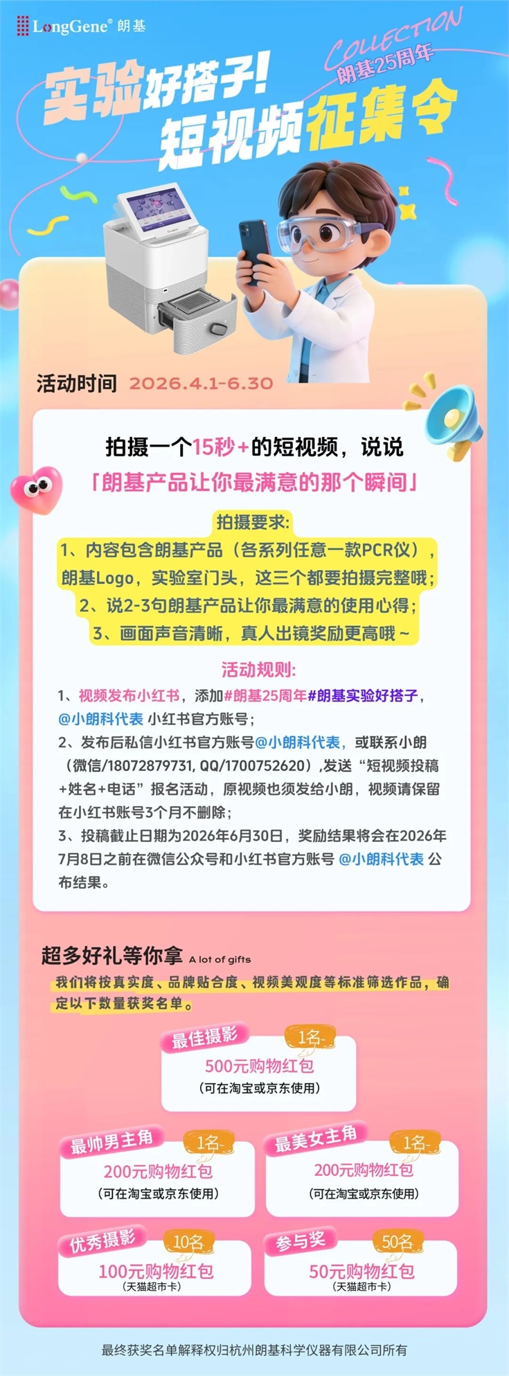 为了庆祝这个特别的时刻,朗基发起了 “朗基25周年·实验好搭子”短视频征集令。而作为广东总代,我们决定:凡是广东省的用户参与活动,我们再加码送好礼! 让大家的参与感加倍,快乐也加倍!