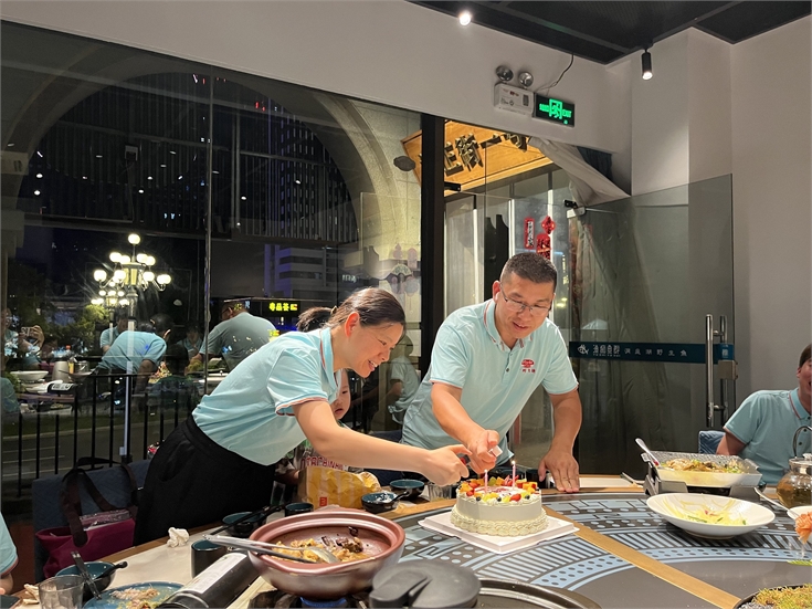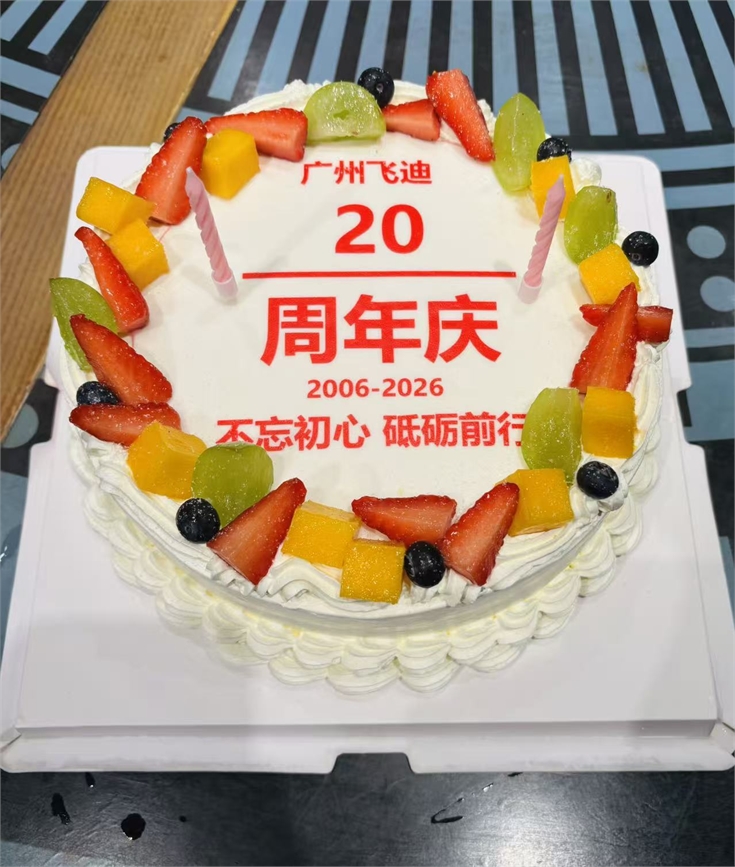 “祝你生日快乐,祝飞迪生日快乐……”歌声不算整齐,却足够响亮。有人举起手机记录,有人悄悄红了眼眶。当蜡烛吹灭、掌声响起的那一刻,每一位飞迪人都真切地感到:这个蛋糕的甜,也有自己的一滴汗水。